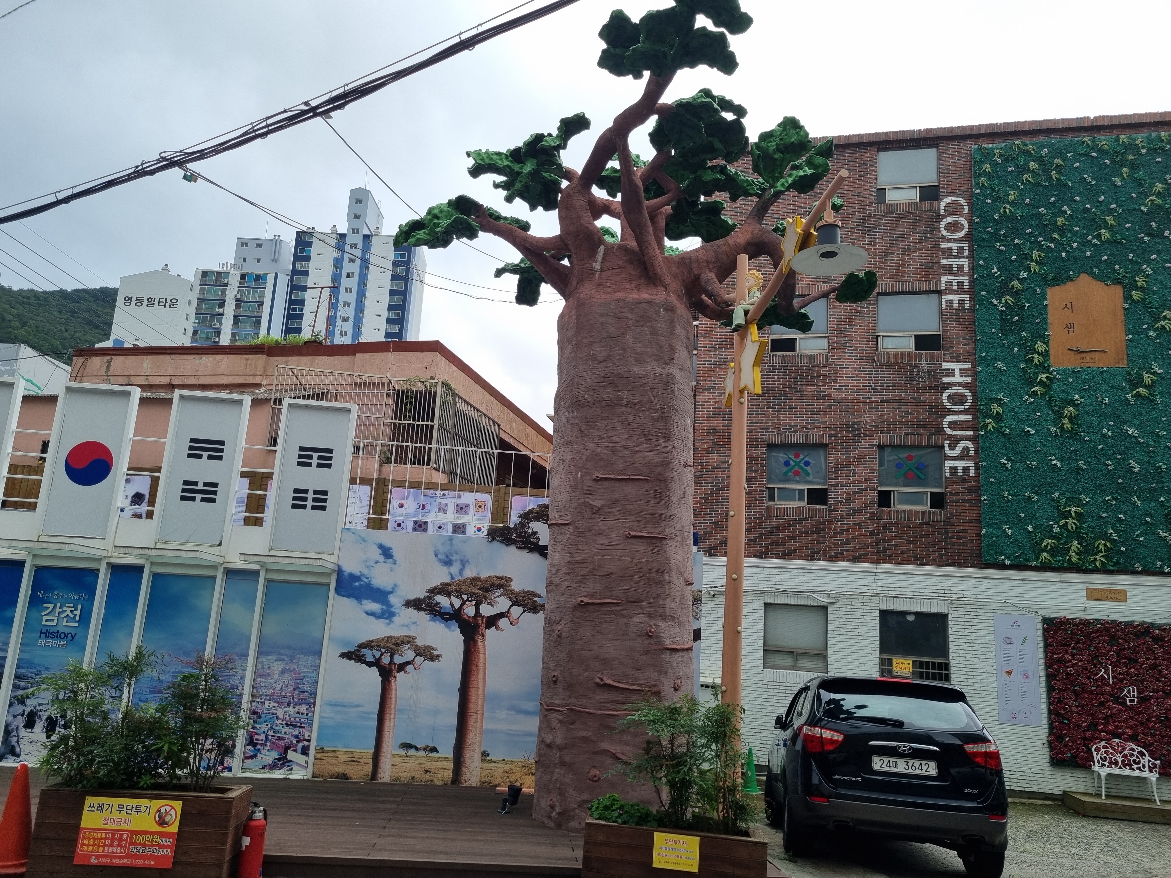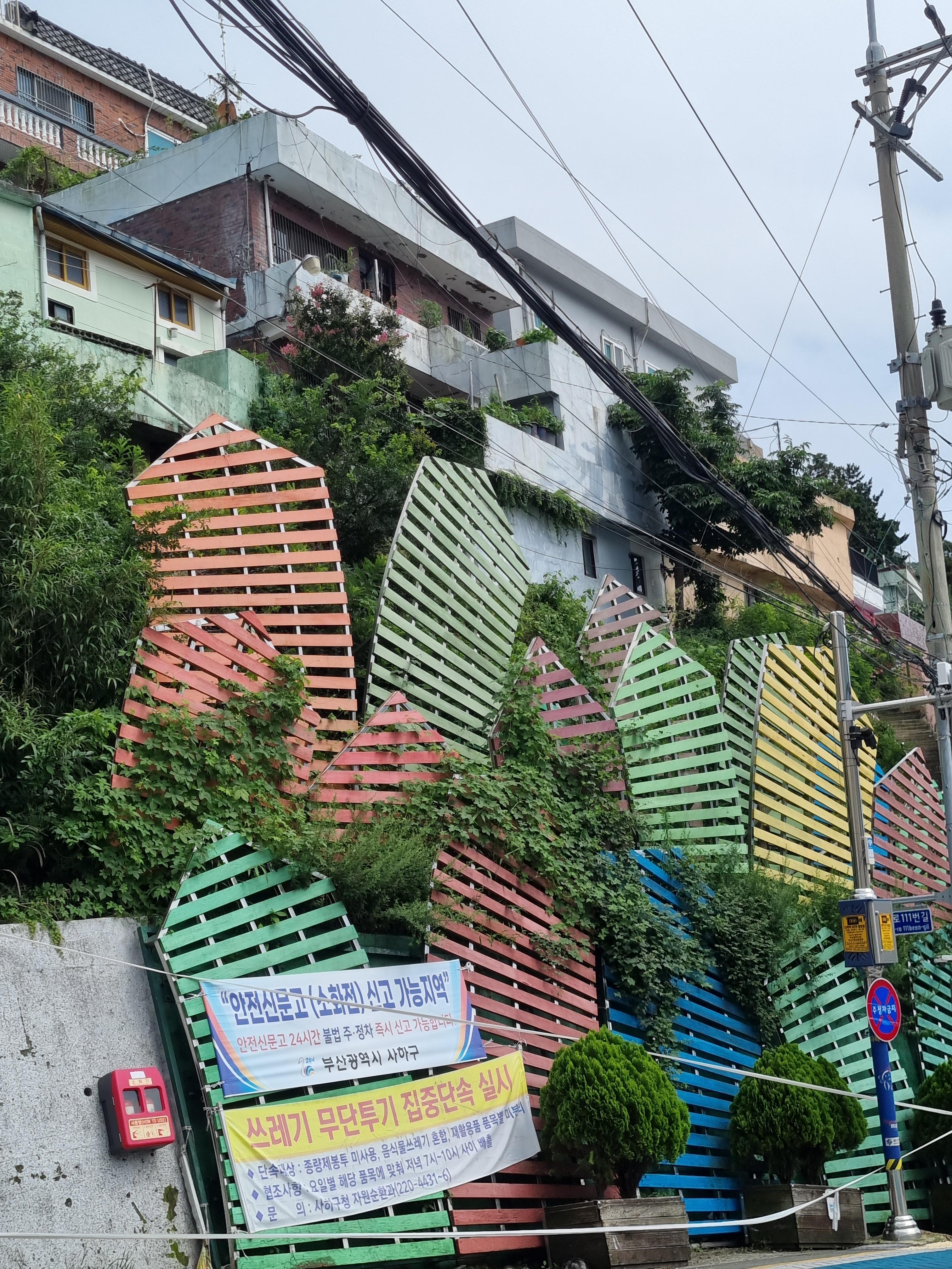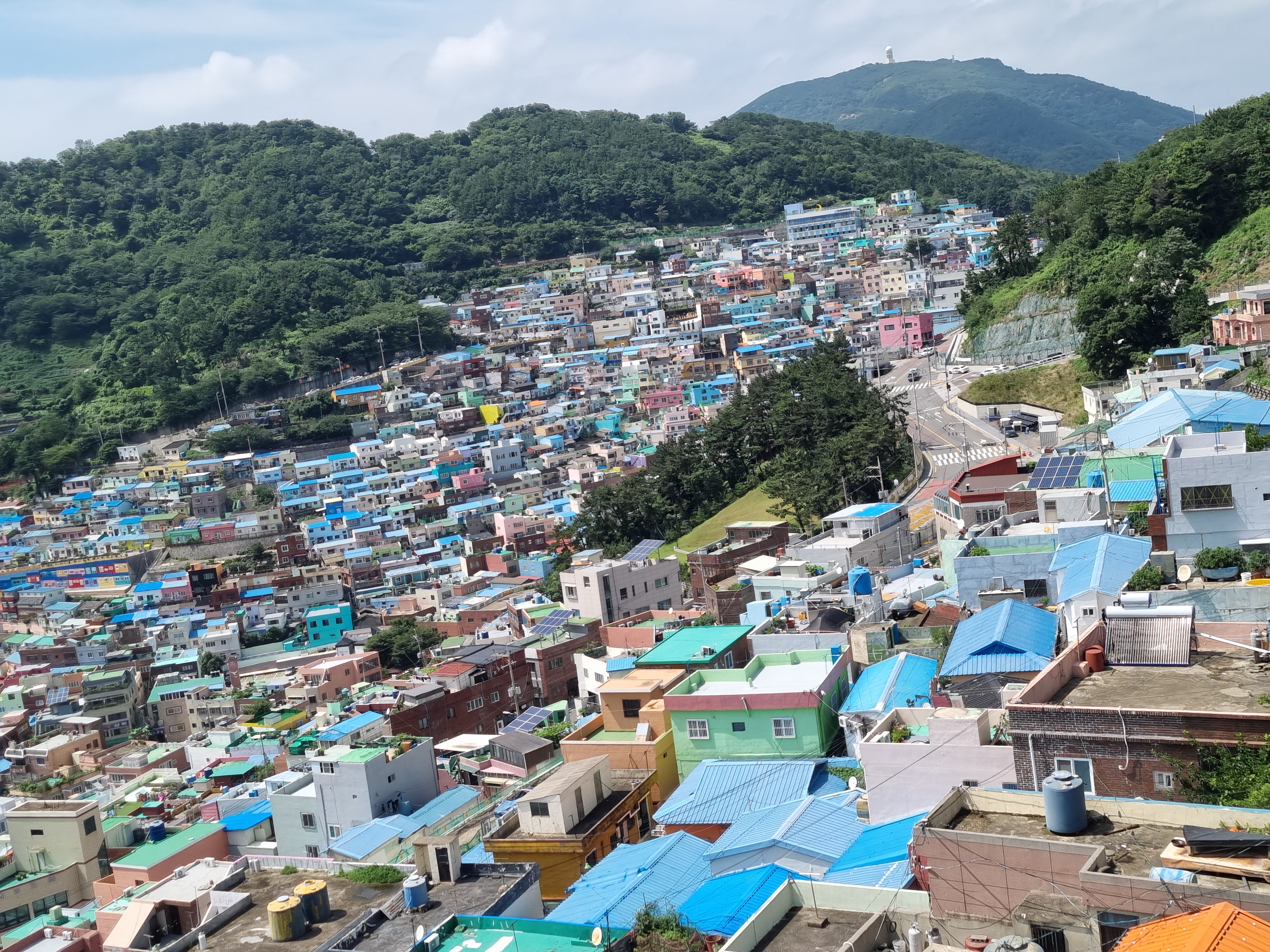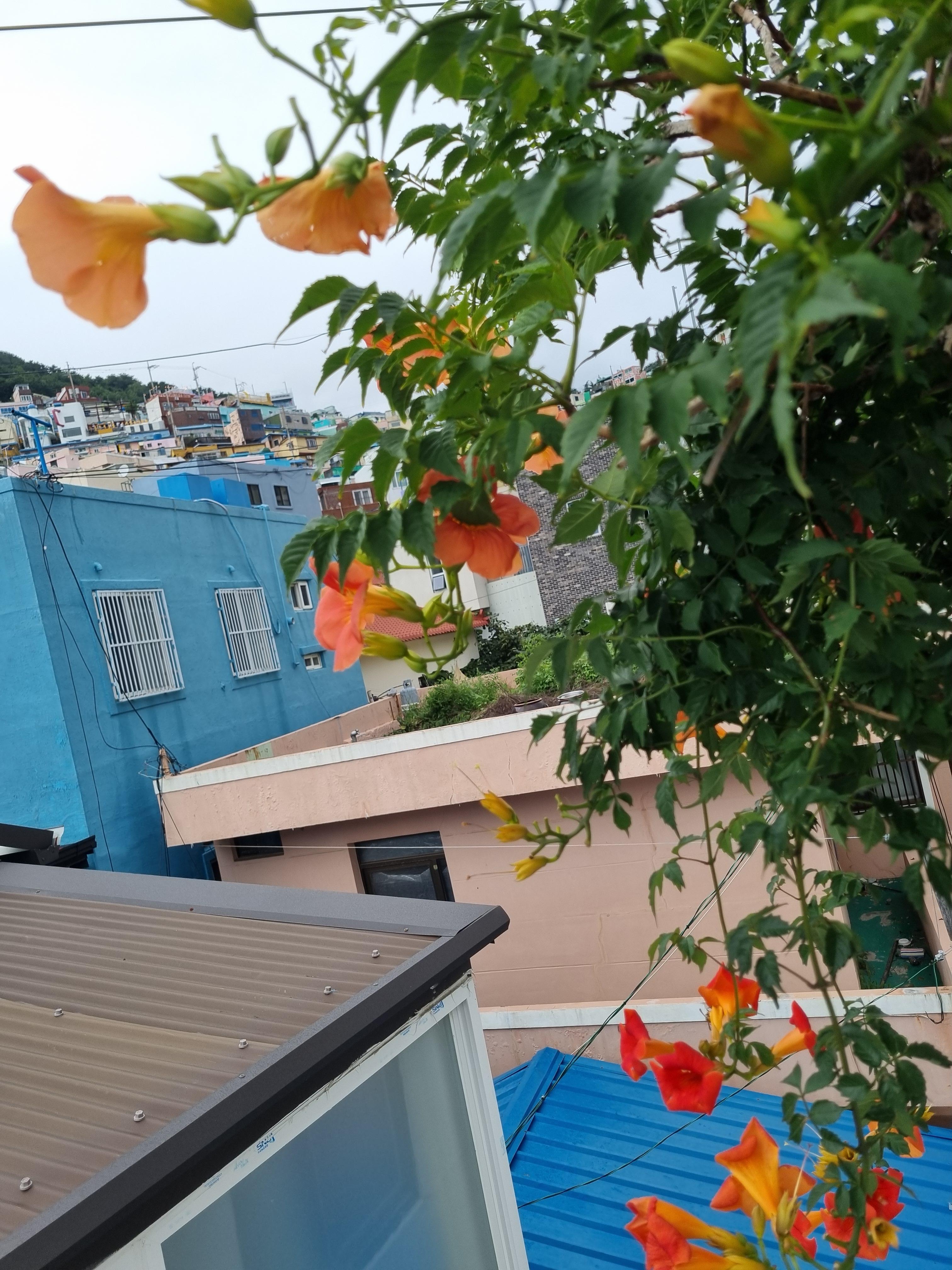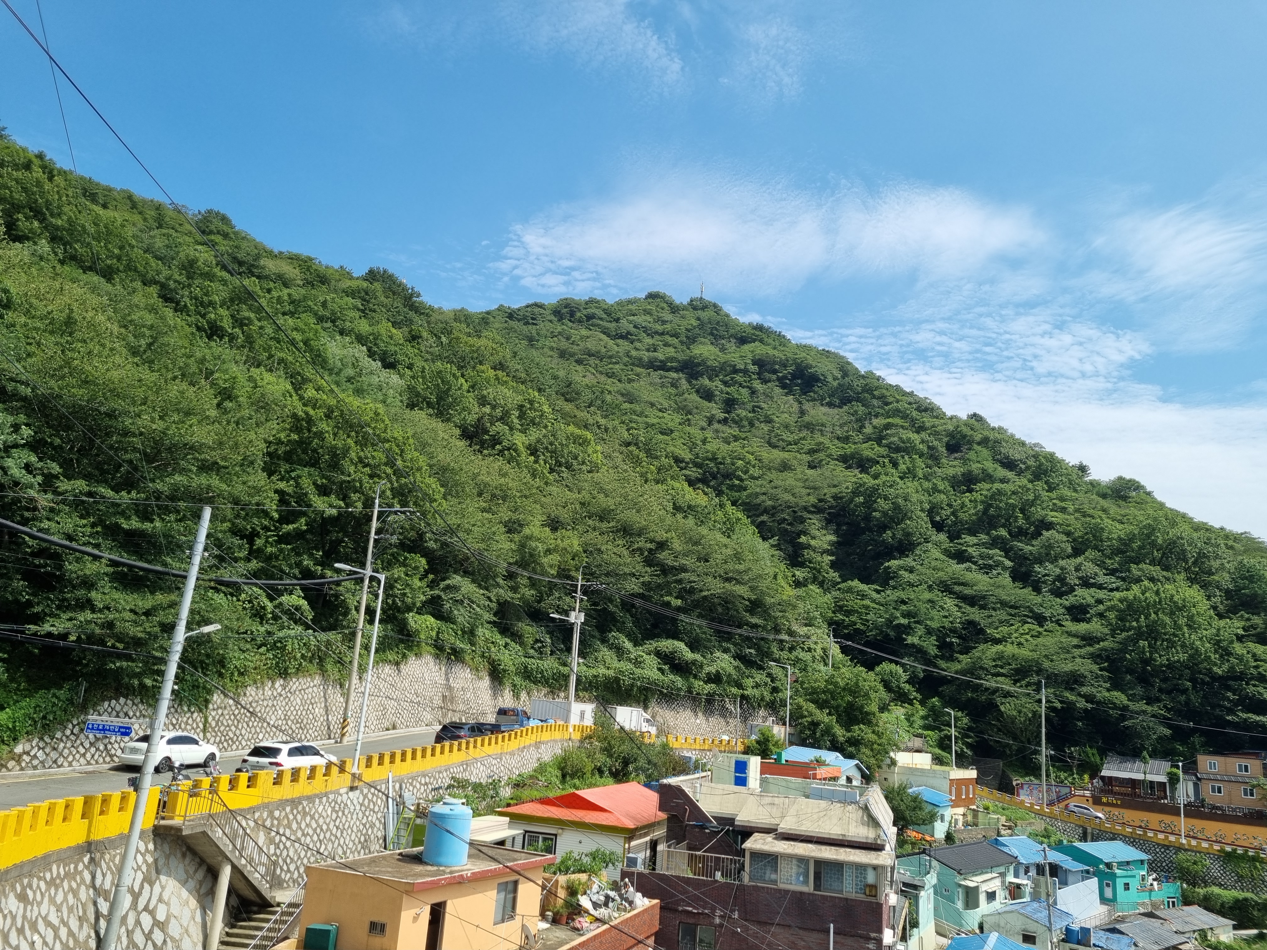 암튼 꼰대인 나는 70년대 달동네시절로 타임머신여행을 떠나는 것만으로도 풋풋했다. 삶이 무미건조하걸랑 감천문화마을을 찾아가 봐라. 축복의 세레머니를 받고 싶걸랑 감천문화마을 골목 끝에 서봐라. 온 산골짝 마을이 신나게 카드섹션을 벌려 환호하는 신기루에 빠지게 한다. 뭔 축제장인가! 당신이 히어로일지 모른다. 마추픽추는 저리가라다. 거기서 발걸음을 천마산으로 향하면 온 우주를 축소한 듯한 아름다운 부산을 품안에 품을 수 있다. 멋진 뷰에 탄성하고 무진장 뿜어내는 피톤치드에 피곤이 치유된다. 2024. 07. 20