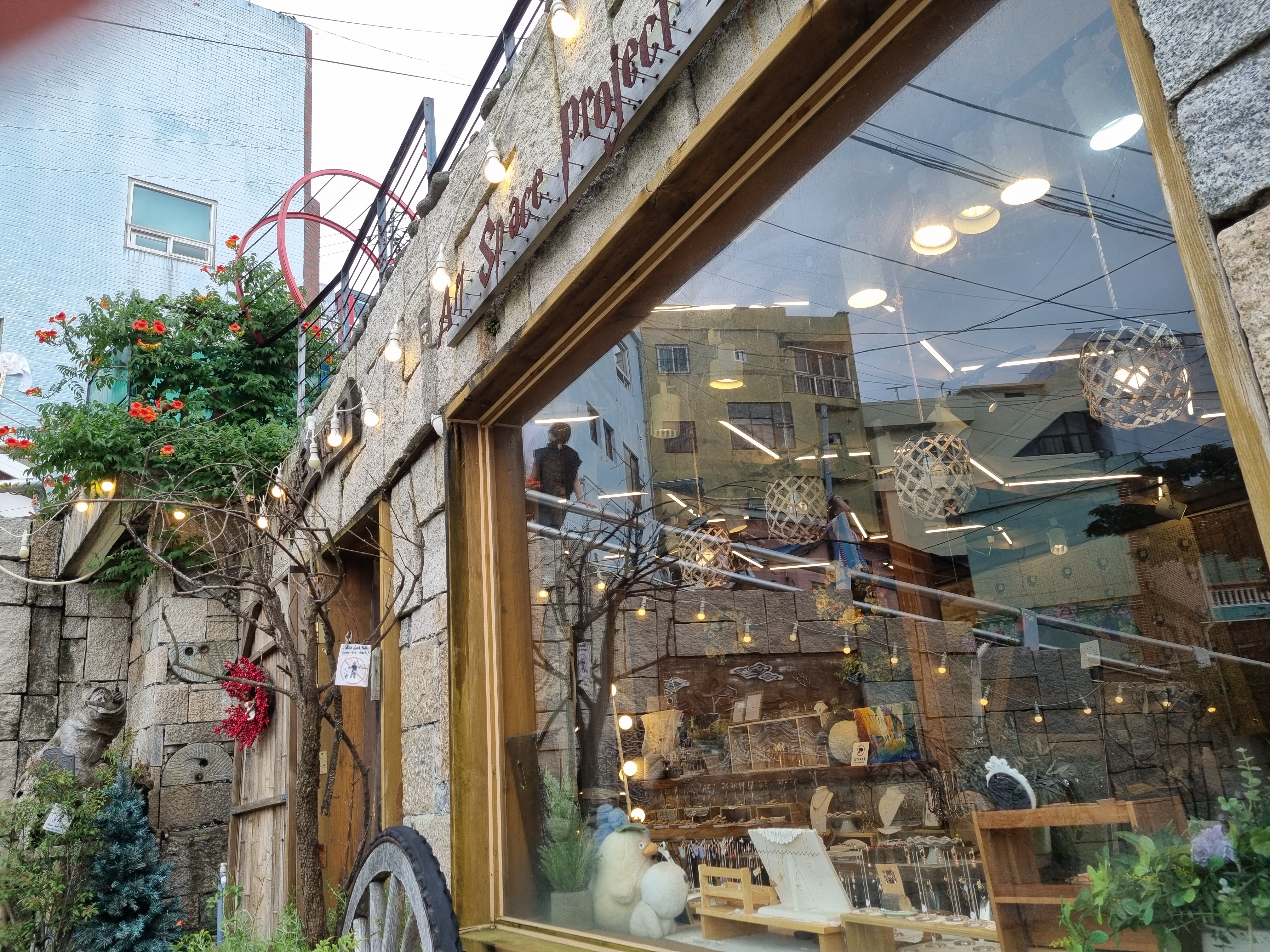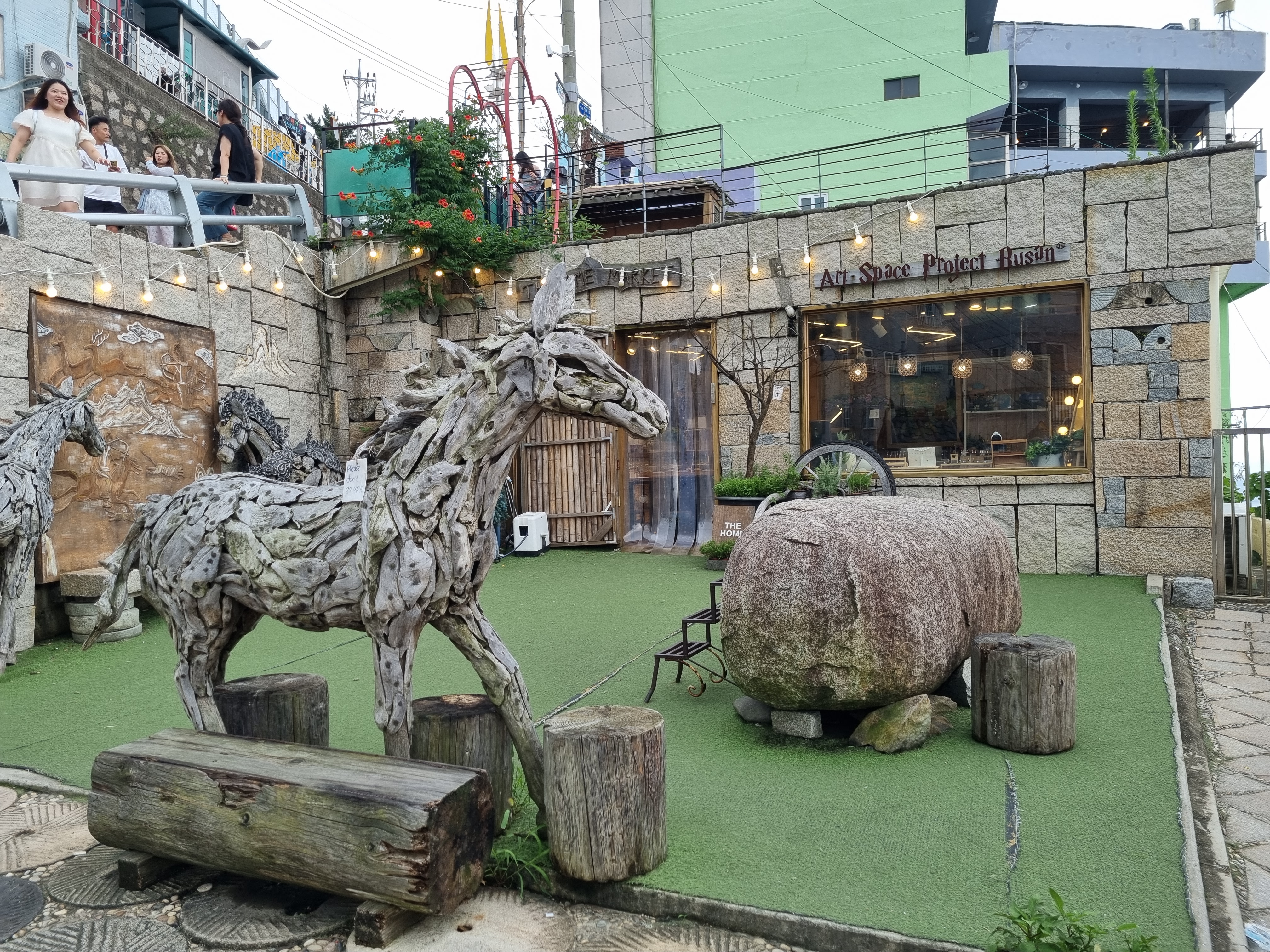 문득 고 이어령교수의 책<축소지향의 일본인>이 떠올랐다. 일본인들이 전자제품을 비롯한 생활용품과 산업용기계까지도 최소로 만들어 성공한 문화를 통찰했다. 축소문화의 행복과 비전이 확대지향으로 변화할 땐 무너질 수도 있단 뉴앙스를 알아채야 한다. 꼴뚜기가 뛰니 망둥이도 뛰는 우를 우린 범하지 안해야 한다. 감천문화마을은 다양하고 흥미로운 발상을 하게 한다. 오늘날 유행을 선도하는 컨셉(concept)들도 우리들의 일상의 삶에서 낚아 올린 거란다. 그래 젊은이들이 감천문화마을에 푹 빠져드는 건가? 알 듯 모를 듯하다.