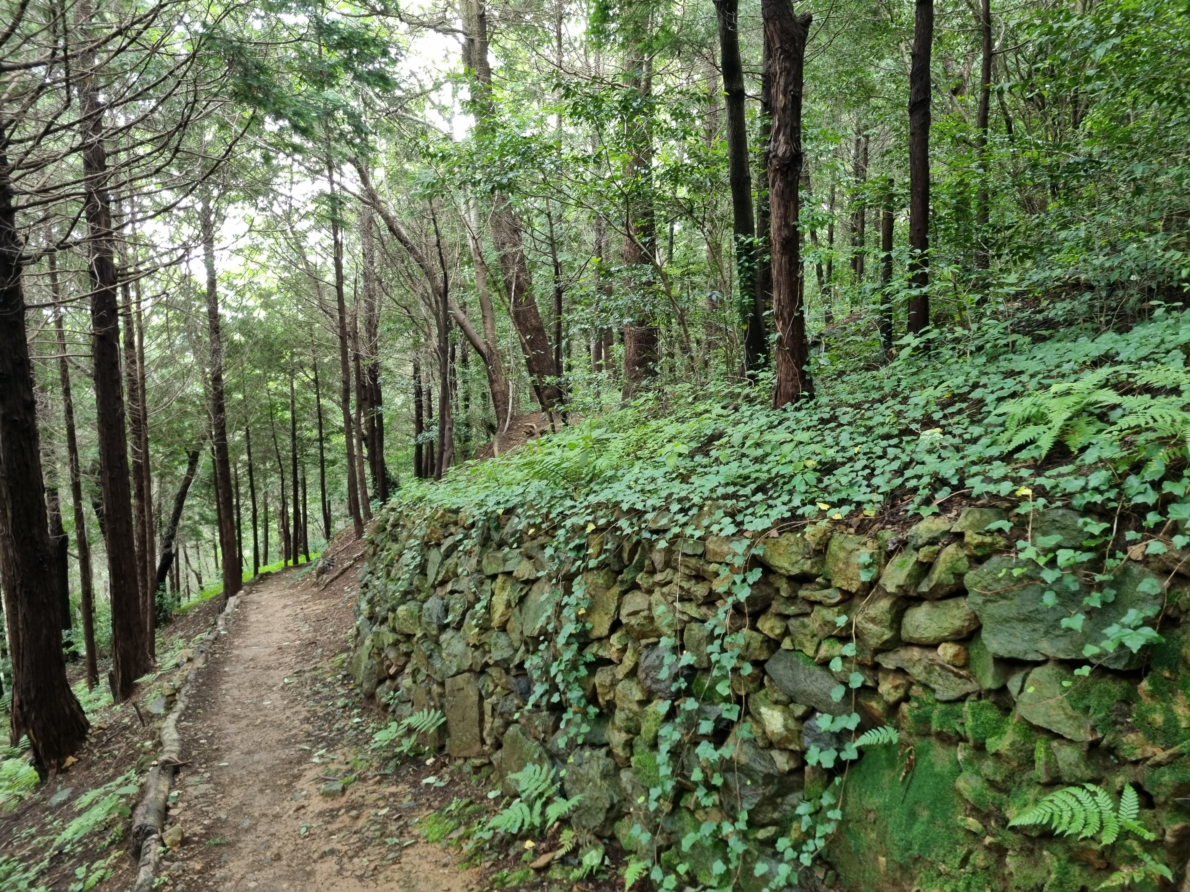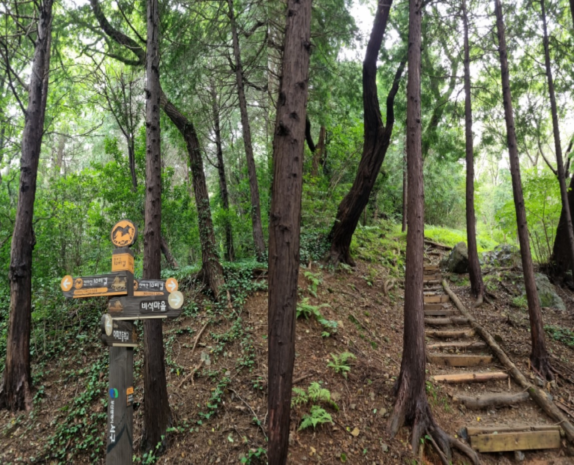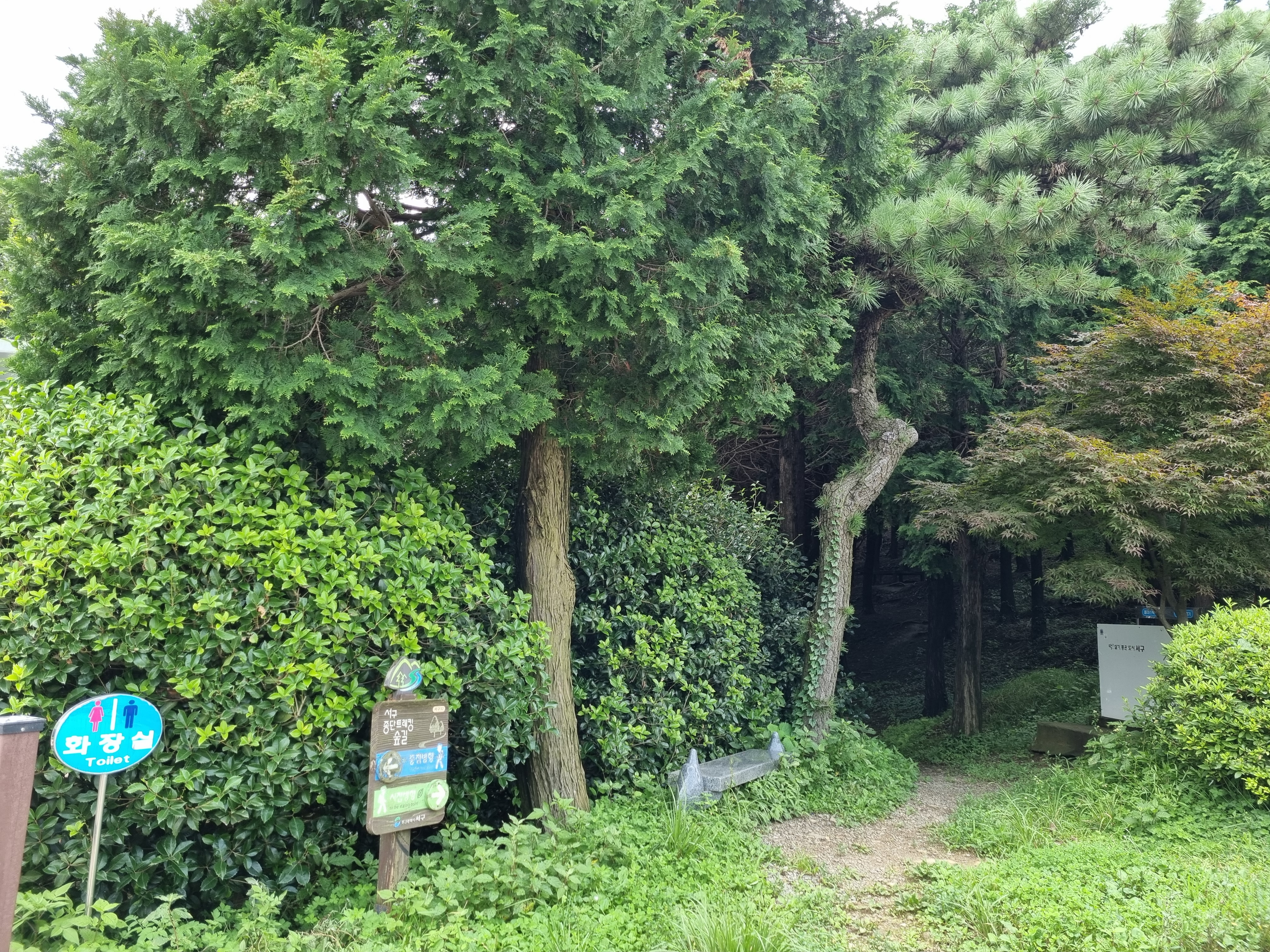 감천문화마을 골목길은 어떻게든 이어진다는 요지경 아닌 기똥참을 이미 터득한 탓에 숨 헐떡거리며 여수같이 헤맸다. 훤한 임도가 나왔지만 급살 맞게 경사진 골짝물길 좇는 숲속산길을 헤쳐 올랐다. 천마산십리길이 나타났다. 긴장이 풀렸다. 고요하고 산뜻한 숲길이 보상하듯 이어진다. 울창한 삼나무 숲속에 탱자나무길, 담장 길, 쥐똥나무길 등 명찰을 달아 놨다. 음습해선지 초소도 있다. 환장하게 멋지다. 이 멋진 숲길에, 치유의 숲길에 왜 인적이 없을까? 고것이 궁금하기도 했다. 전나무가 하늘을 찌를까봐 회색구름이 장막을 쳤다.