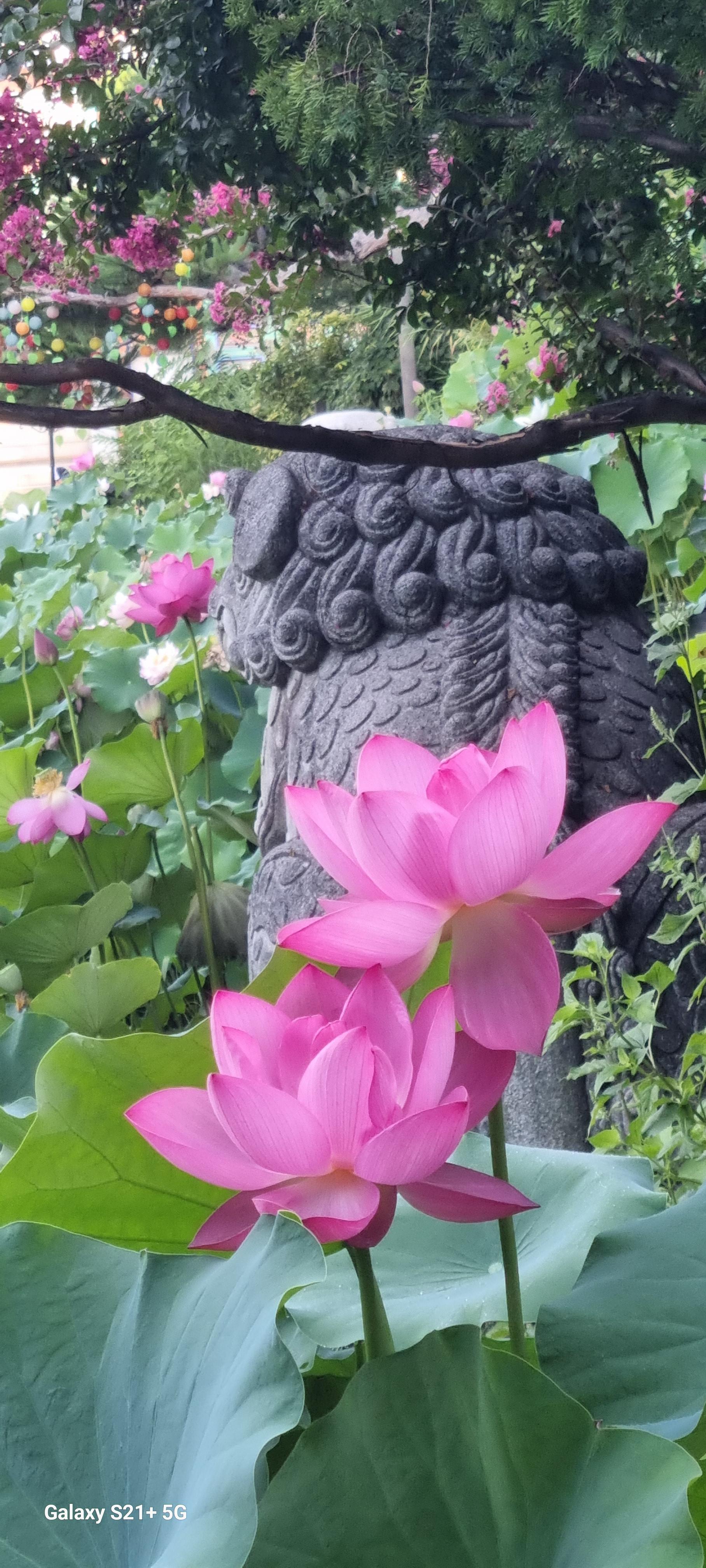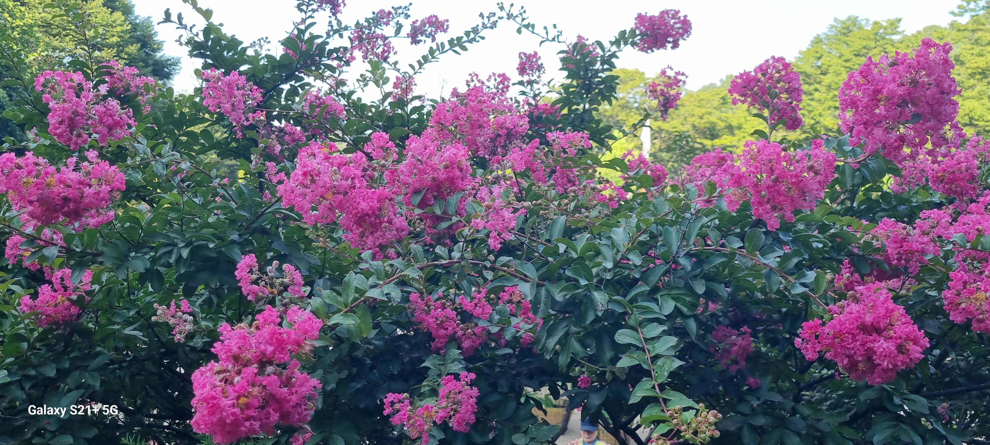 시 <자미화를 읊다(詠紫薇花)>는 송강이 진옥에게 베갯머리 속삭임으로 다짐받고 싶은 이별가이기도 합니다. ‘진옥아! 행여 문밖출입으로 저잣거리 어느 누구 앞에도 나서질 말거라’ 라면서 오직 자기만 생각하고 있으라는 흉금을 표현한 투정이고 당부였습니다. 50대의 노인이 30여살 연하의 애인이 바람피울까 봐 심려했는데 그 절절한 연심을 배롱나무를 통해 지금까지 간절하게 읊어지고 있습니다. 봉원사경내 연꽃과 자미화를 탐닉하며 유난히 뜨건 여름피서에 나를 잊곤 합니다. 불광불급 (不狂不及 미쳐야 미친다)이라 했습니다. 2025. 08. 11