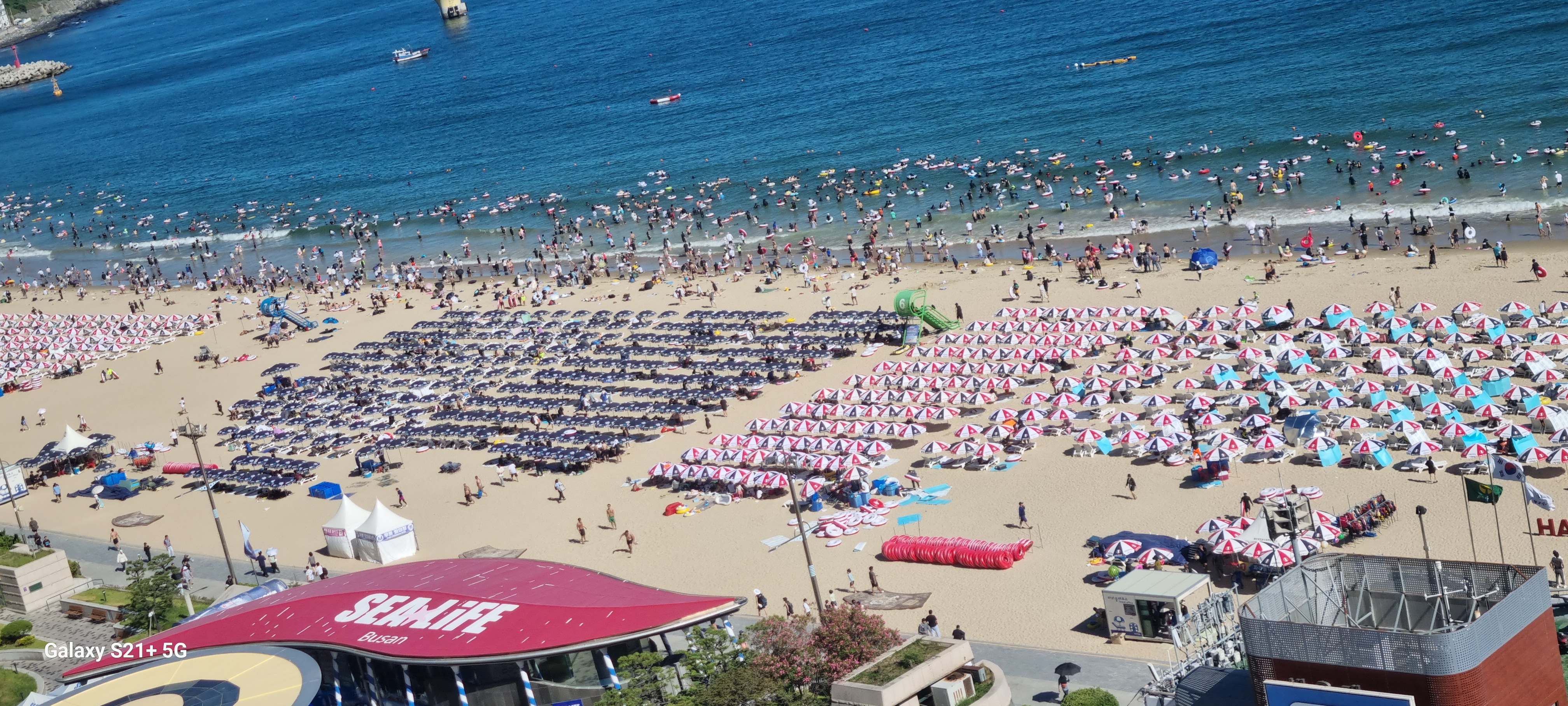 20여일간 서울 집에서 머물다가 부산 옾`텔 도어를 열고 들어서자 후끈한 사우나 실이다. 엊그제까지 중부이남지역엔 연일 폭우가 쏟아졌는데도 폭염기세는 꺾이질 안했다. 창을 열어 실내 환기를 시키며 짐정리와 청소를 한다. 13층 창밖에 펼쳐지는 해운대해수욕장은 피서객들이 촘촘히 들어서서 소인국(小人國)의 여름으로 둔갑했다. 피서 겸 관광차 동남아를 비롯한 지구촌 사람들이 비행기타고 수만리 길의 해운대소인국을 찾아와 피서인파로 북적댄다.
