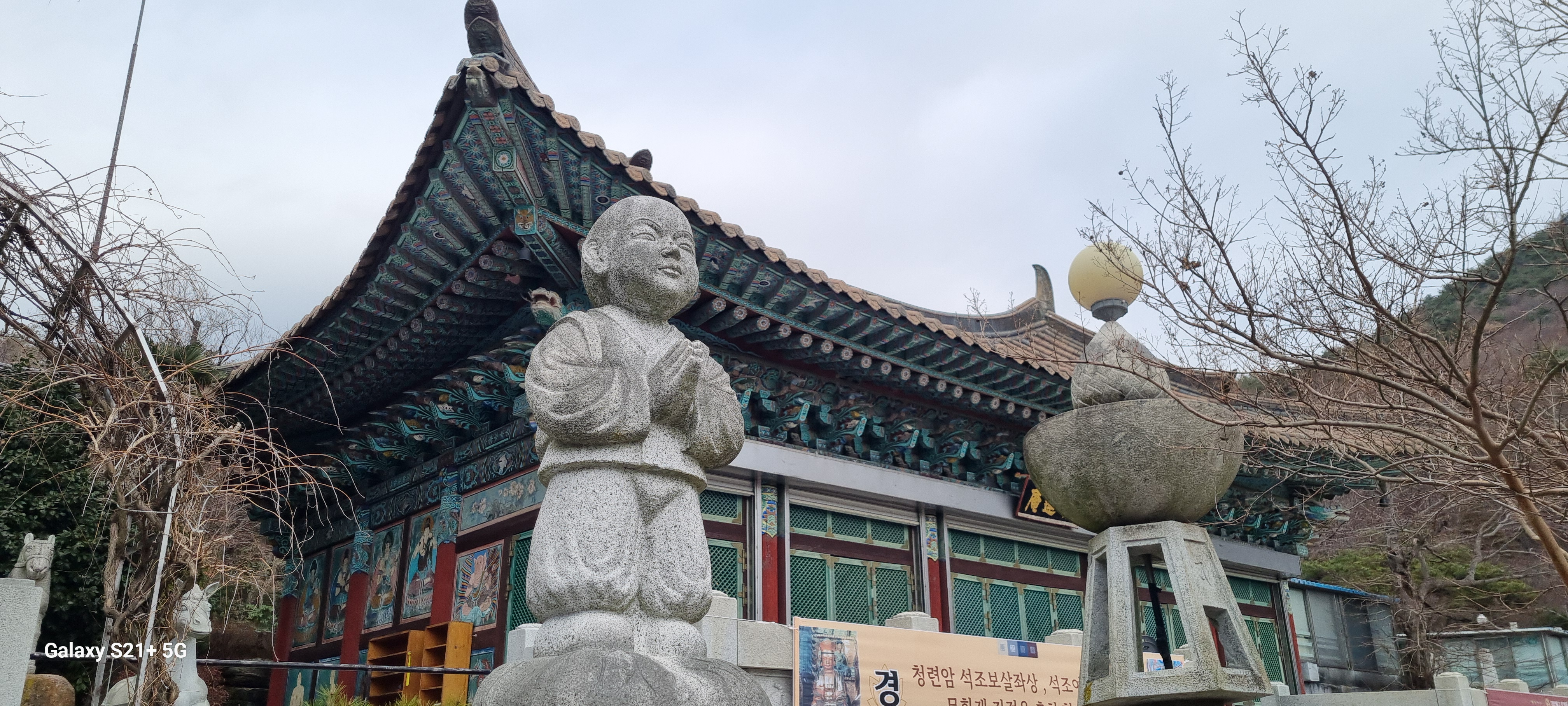 계명암입구 좌측에 청련암(靑蓮庵)이 있다. 청련암에는 지옥(地獄) 중생(衆生)의 구제를 서원하는 지장보살(地藏菩薩)을 모신 지장원이 엄청 크고 장엄하여 탐방객을 압도한다. 지장보살 아래 수많은 도반과 중생들의 흉상이 천차만별로 자리하여 사바세계를 펼치며 중생들이 사후 극락세계(極樂世界)에 드는 기도의 요람인가 싶었다.