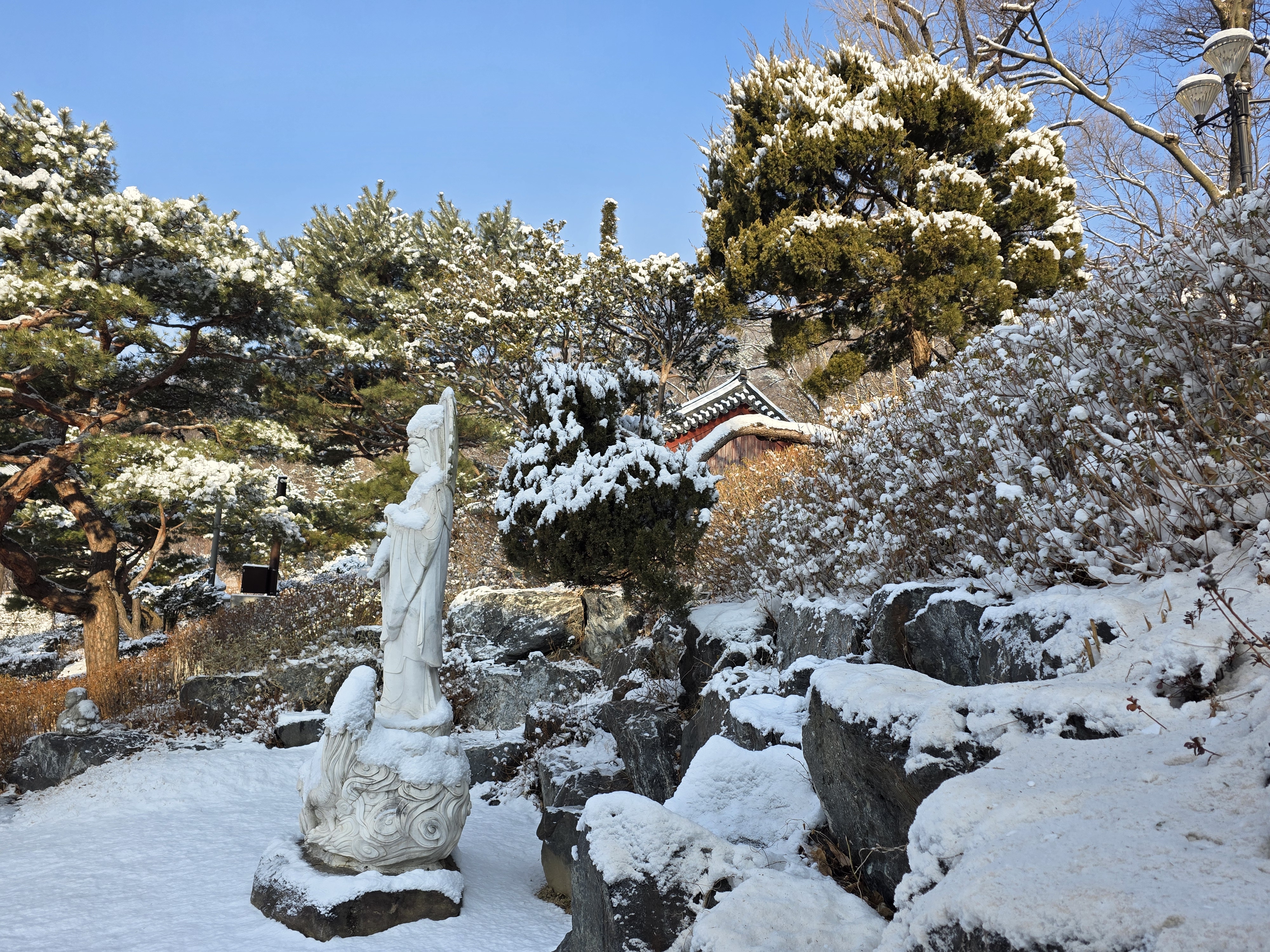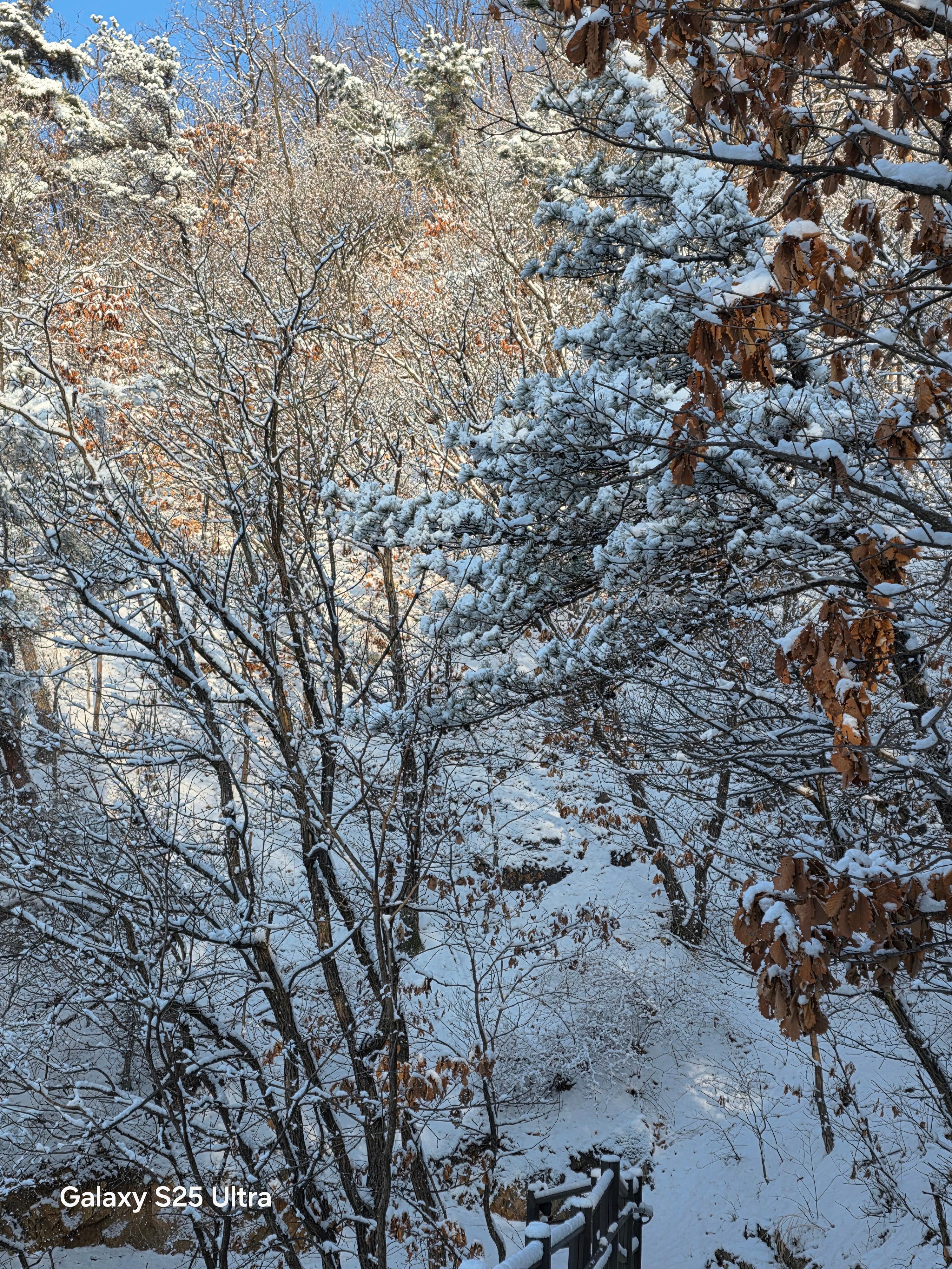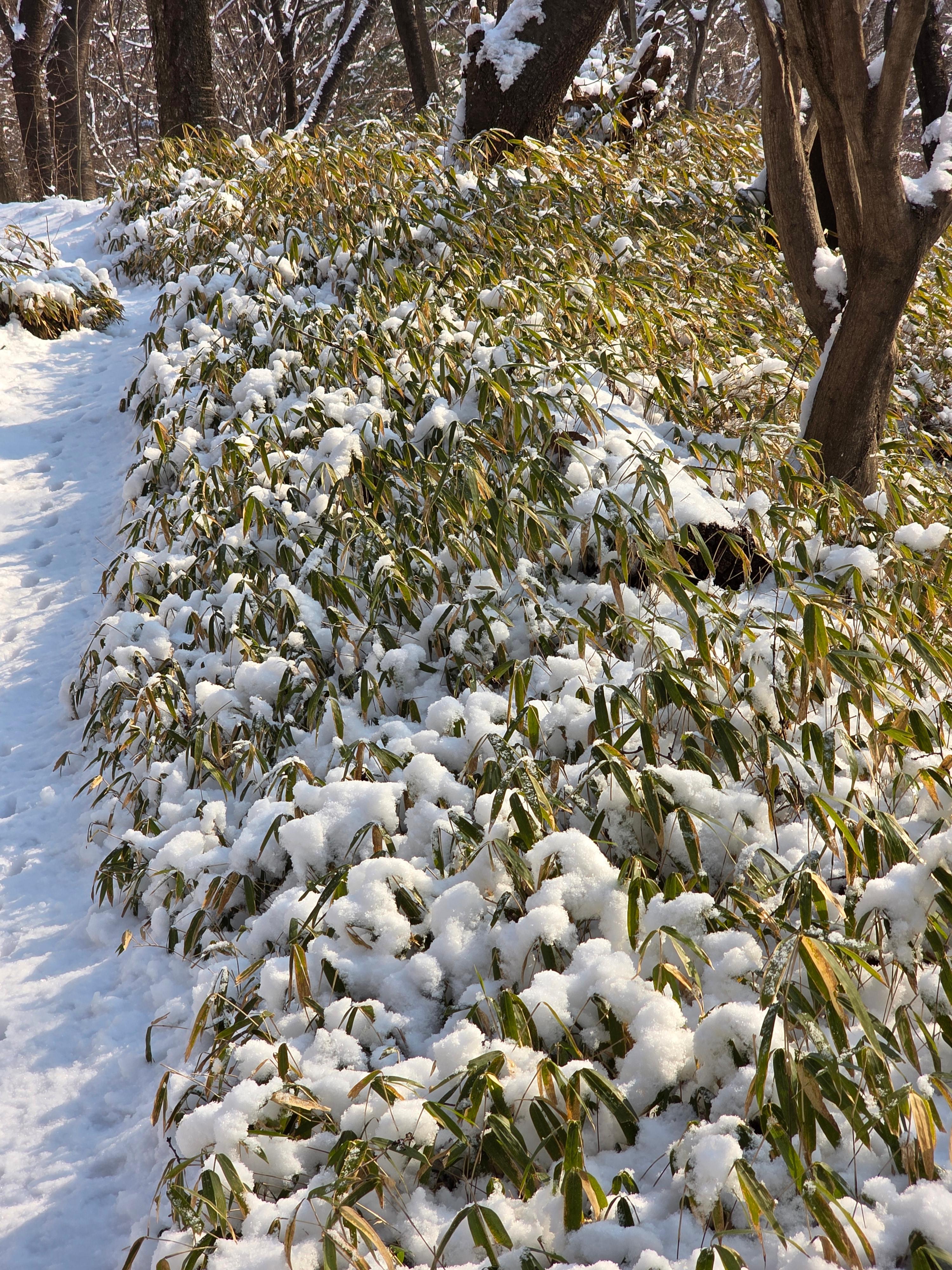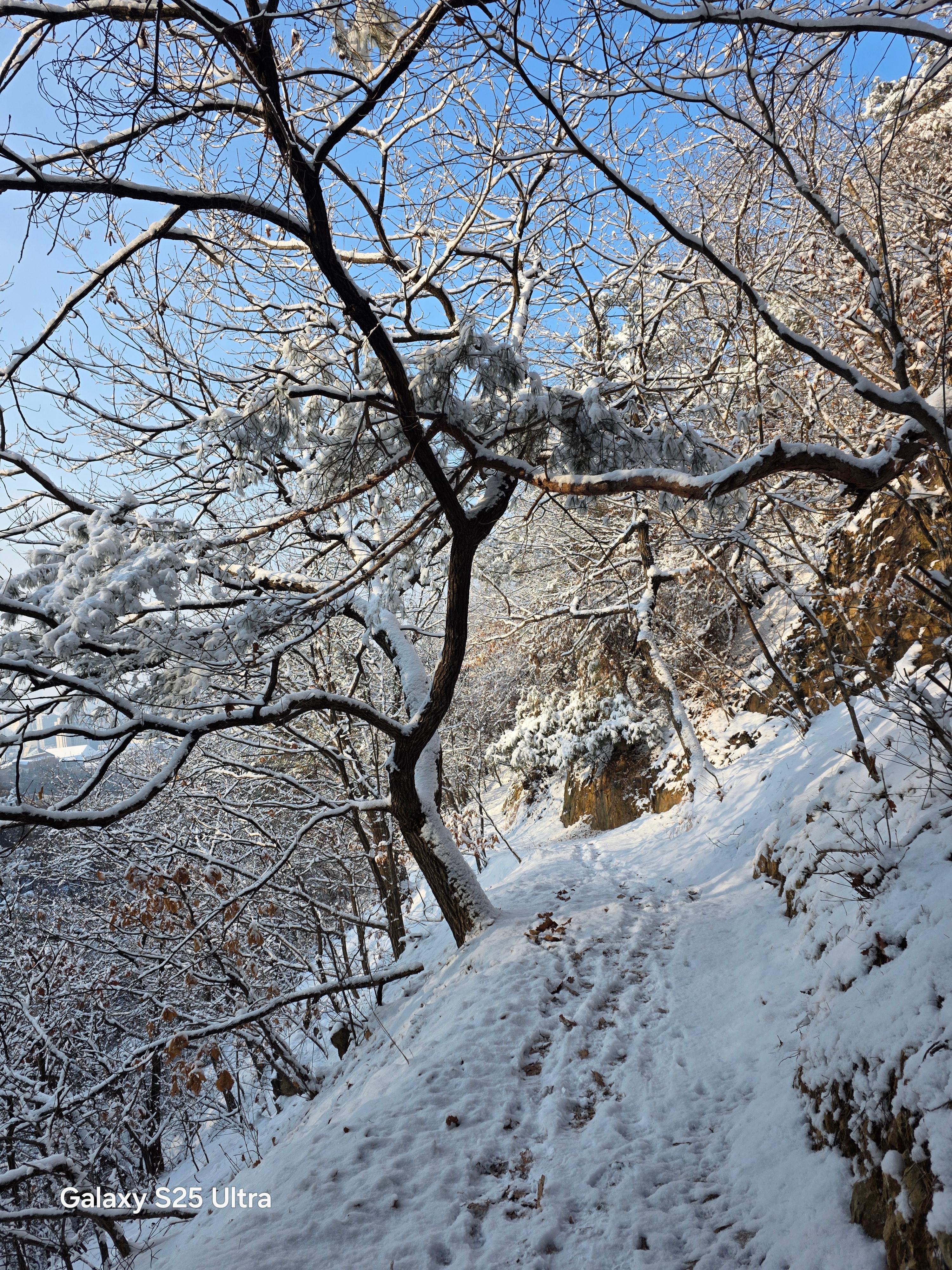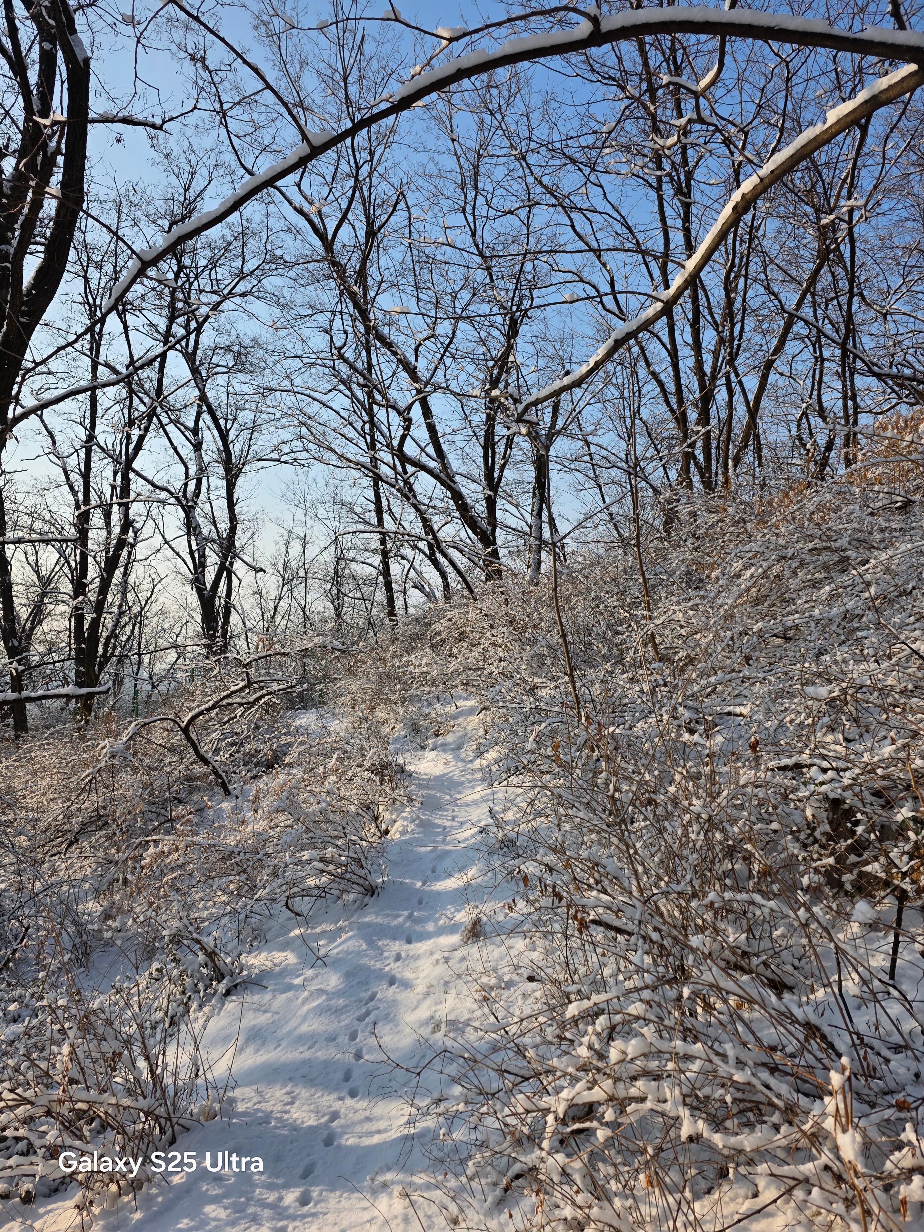 겨울철 설경은 정서적인 면에서도 낭만과 희열을 공감케 해 풍요로운 삶을 영위케 한다. 인성의 순화는 풍요로운 사회의 원동력이다. 자연을 본래의 자연상태로 유지케 하는 건 사람들의 의무요 지혜다. 울`나라의 유토피아라고 부르는 부산사람들이 겨울철에 눈발 하나 볼 수가 없음은 불행이다. 자연이 빚어낸 설국의 장관은 어떤 그림으로 대체할 수 없는 신의 영역이고 예술의 극치다. 오늘 설국의 안산 초록숲길 산책은 나를 살찌움이라. 2026. 02. 02