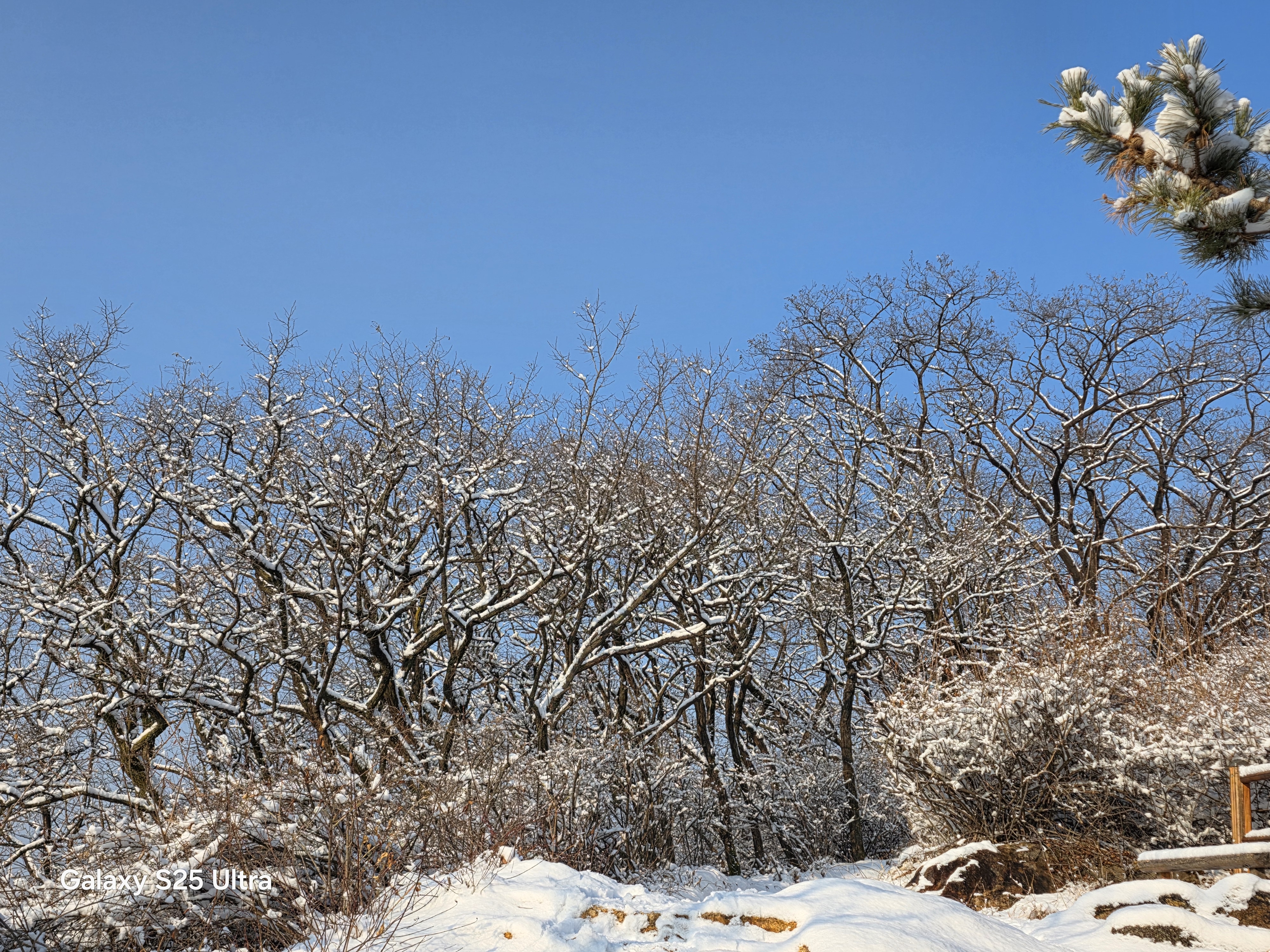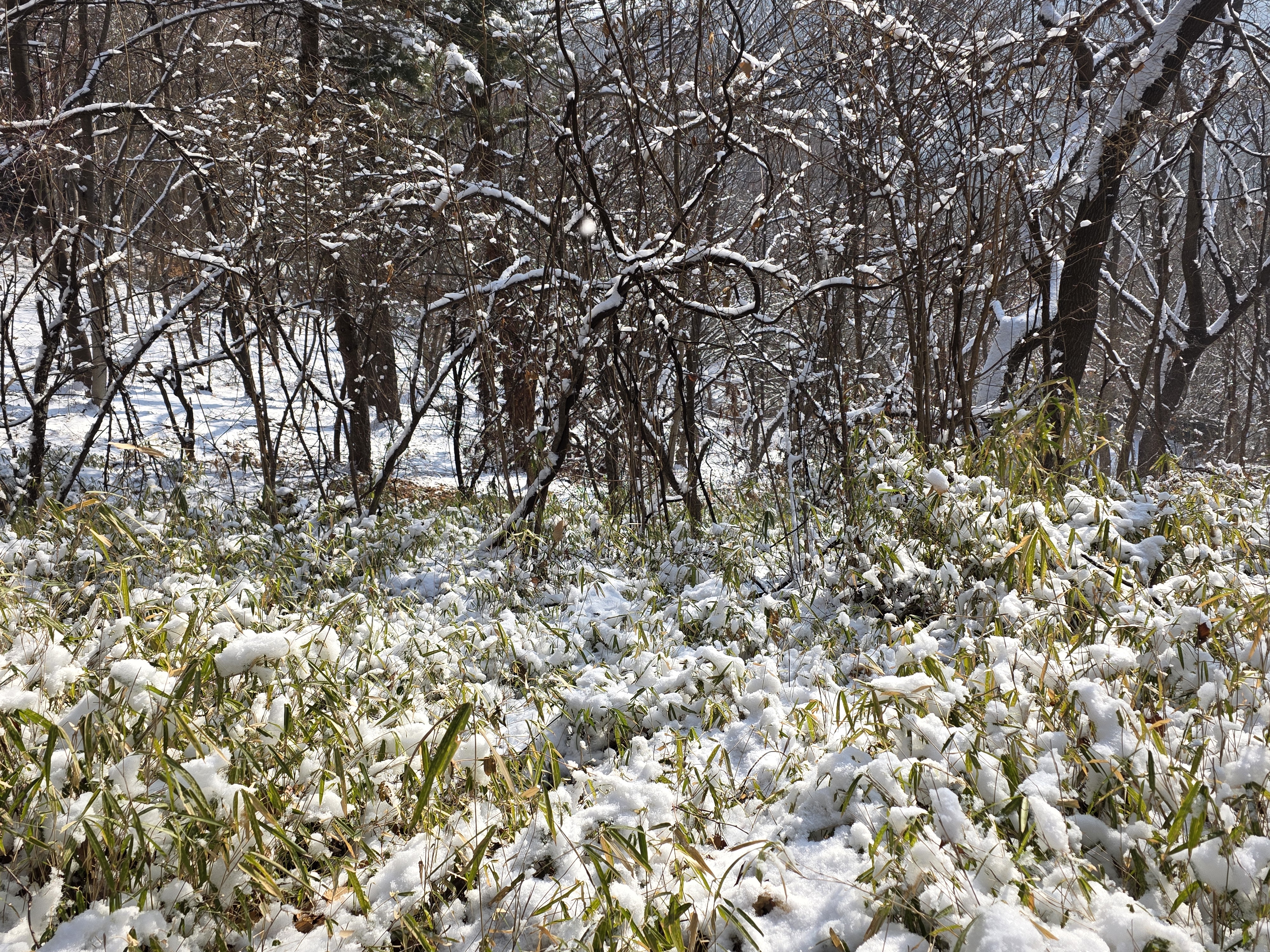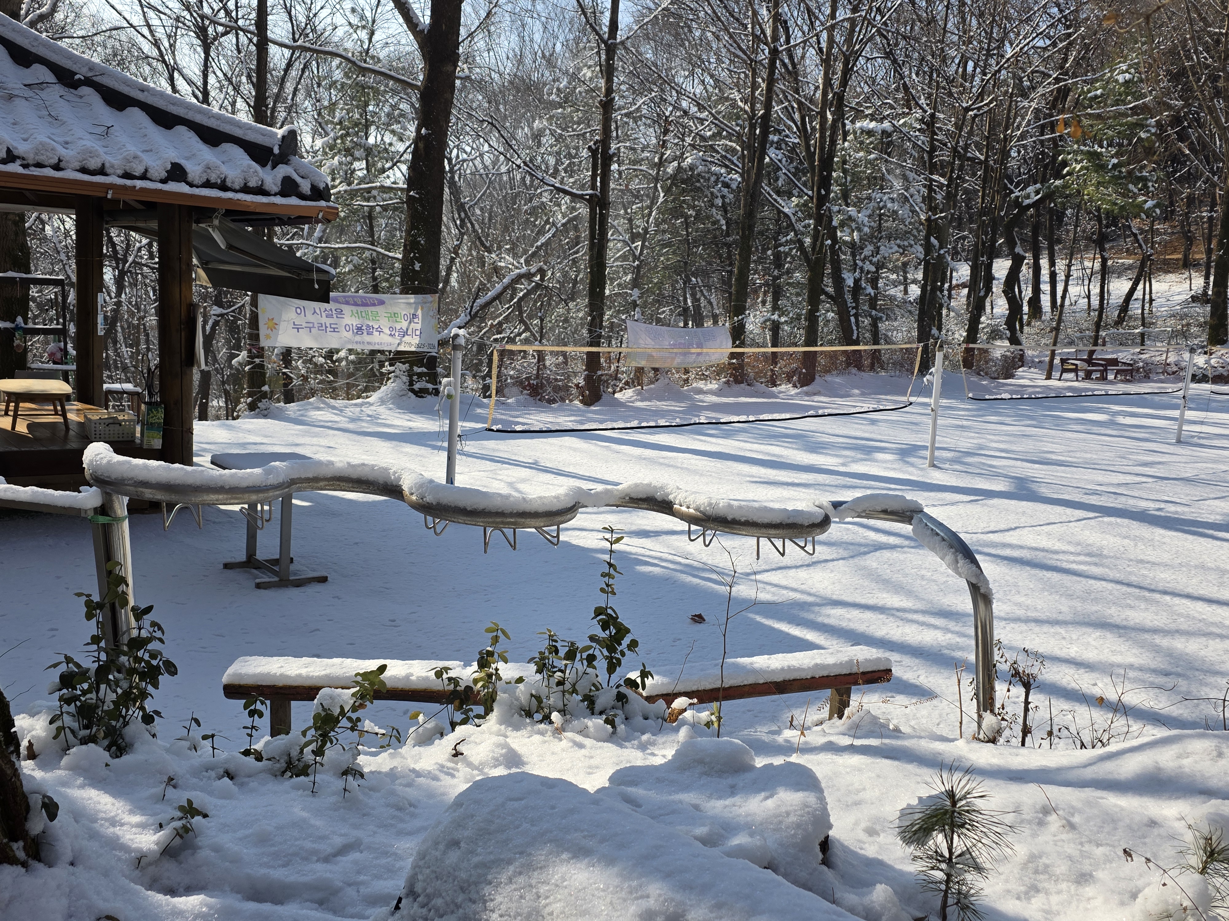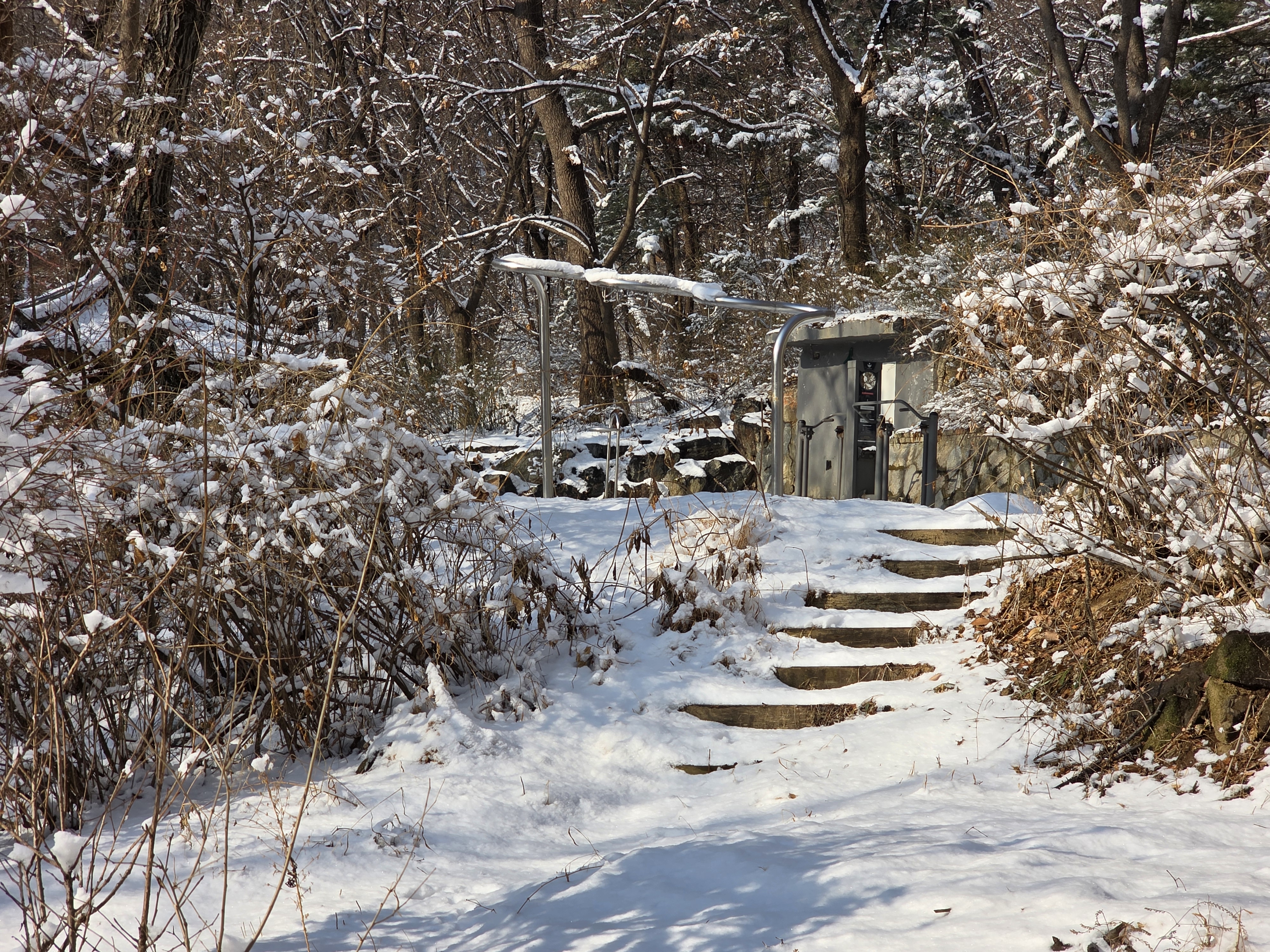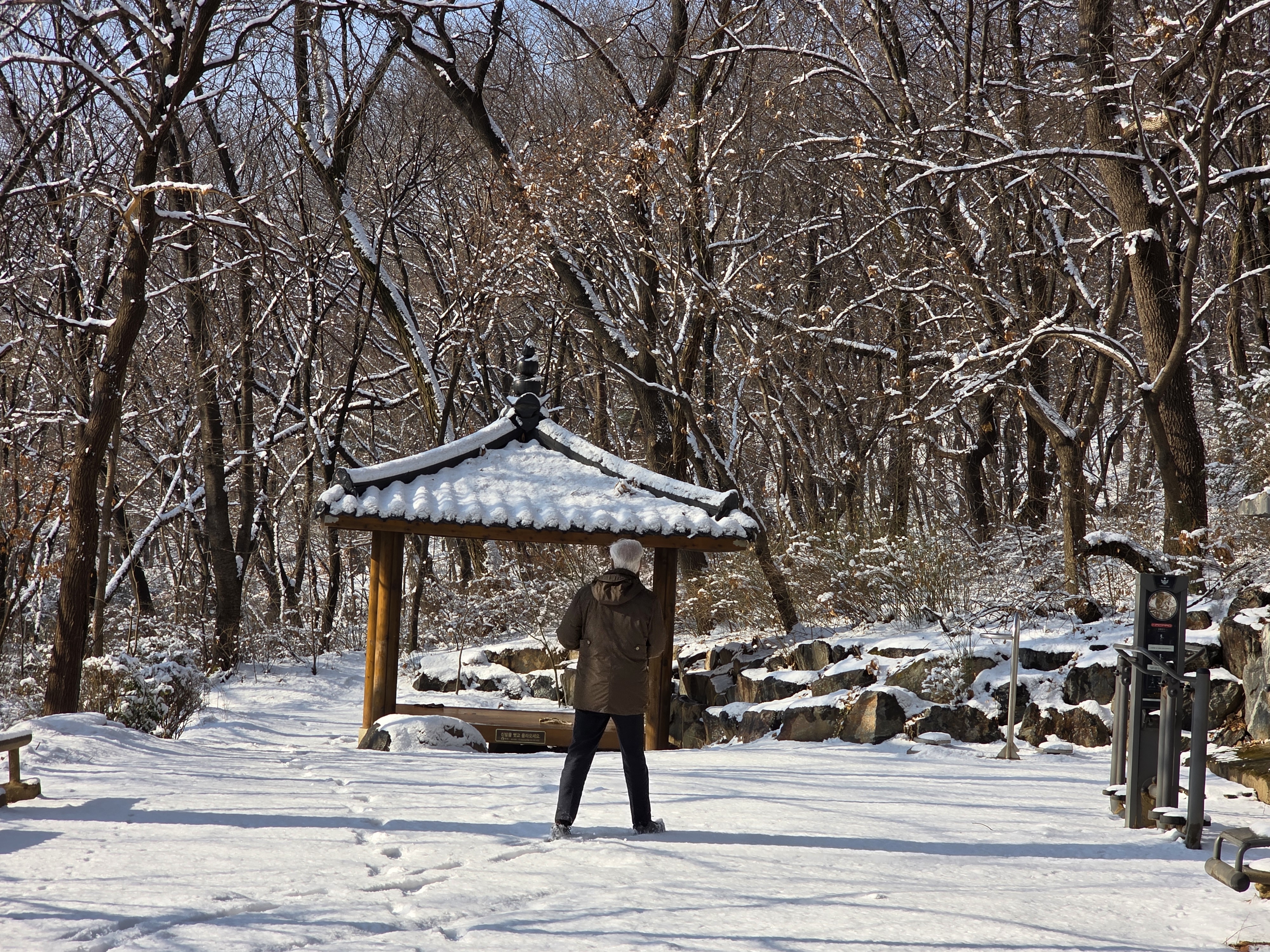 겨울철 설경은 정서적인 면에서도 낭만과 희열을 공감케 해 풍요로운 삶을 영위케 한다. 인성의 순화는 풍요로운 사회의 원동력이다. 자연을 본래의 자연상태로 유지케 하는 건 사람들의 의무요 지혜다. 울`나라의 유토피아라고 부르는 부산사람들이 겨울철에 눈발 하나 볼 수가 없음은 불행이다. 자연이 빚어낸 설국의 장관은 어떤 그림으로 대체할 수 없는 신의 영역이고 예술의 극치다. 오늘 설국의 안산 초록숲길 산책은 나를 살찌움이라. 2026. 02. 02