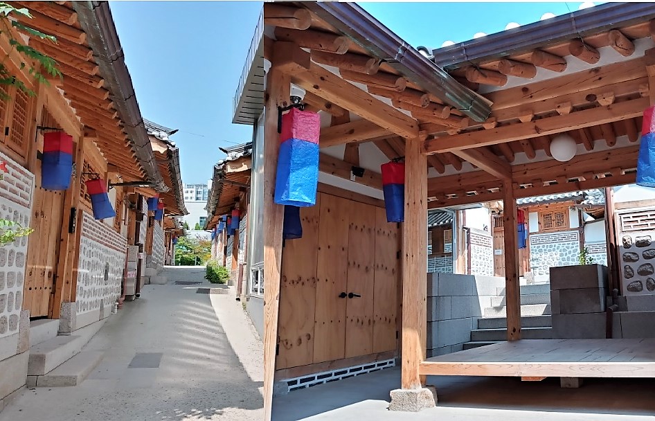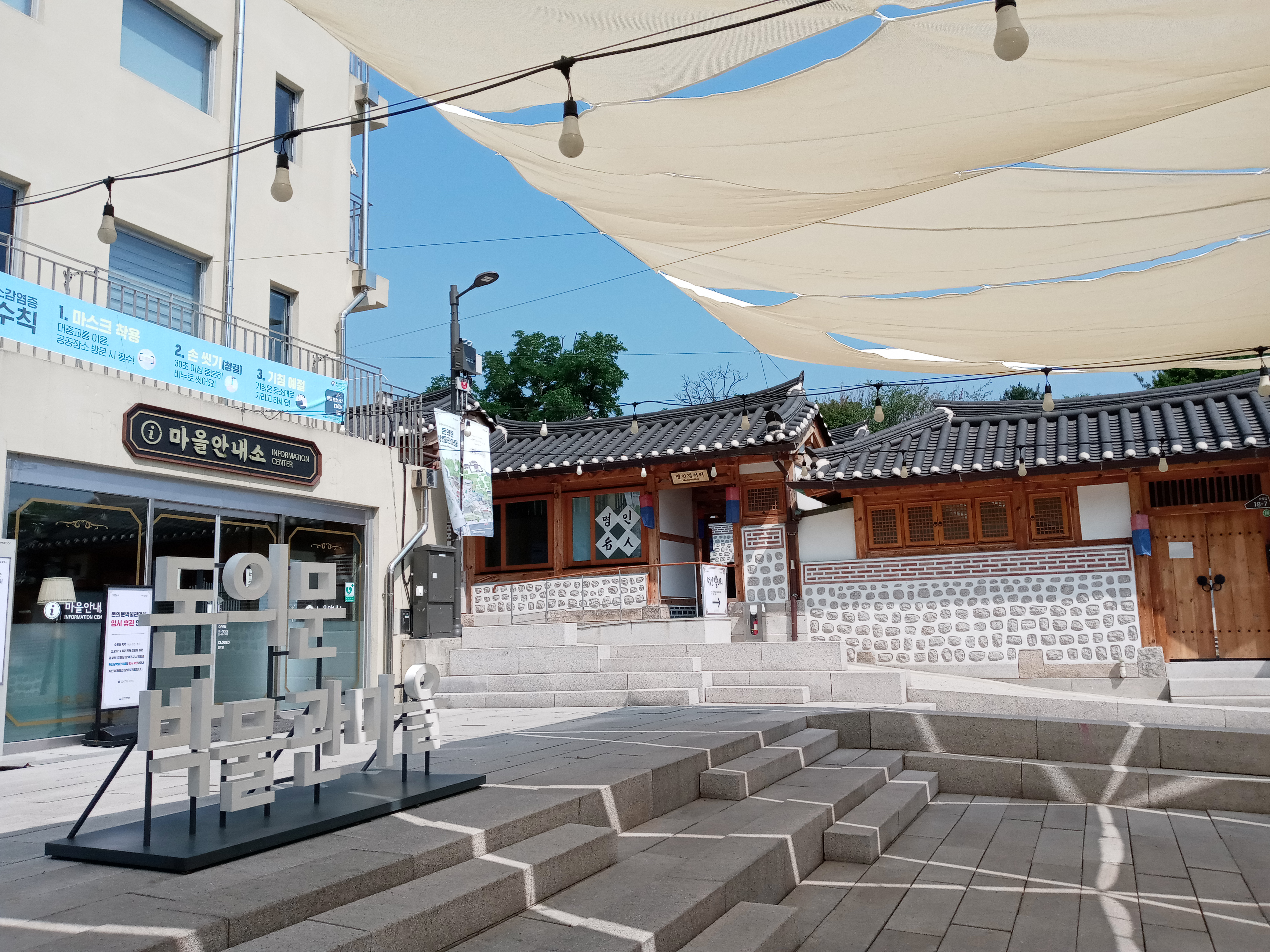이번에 근현대의 풍정을 실감나고 깔끔하게 복원한 게 여실하다. 마을의 골목과 담장, 구석구석의 공간과 집안 마당까지 흘러간 시간의 축적을 고스란히 전시하고 있다. 차일 처진 마을마당엔 공연과 플리마켓이 성황하고 먹거리와 문화행사가 사시사철 호객할 거란다. 석양의 조선조, 정동에 세운 새문안교회 이름도 '새문 안에 세운 교회'라는 뜻 이였다. 광화문(육조거리)에서 돈의문까지 잇는 길을 새문안길(신문로)이라 불렀고 이게 지금도 그대로 사용된다.